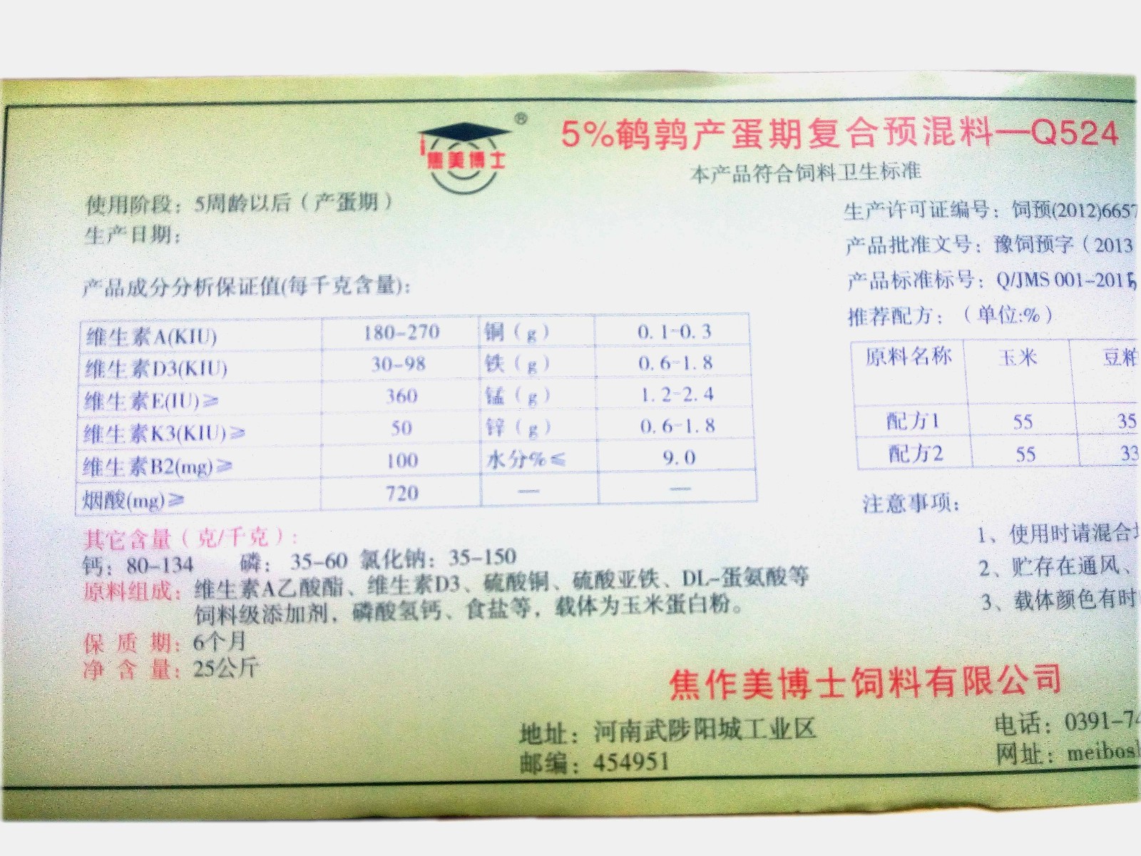 5、Q524鵪鶉專用預(yù)混料中添加貝殼粉、石粉、蛋殼粉等*佳的鈣源飼料,大大提高鈣利用率高。提高了蛋殼的品質(zhì),且耐運(yùn)輸。